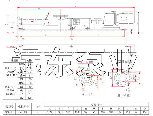 G50-1單螺桿泵安裝尺寸圖,該尺寸圖配YCJ80減速機(jī)