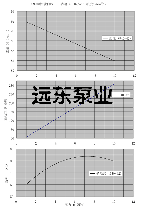 SMH940三螺桿泵(SMF940三螺桿泵,SMS940三螺桿泵)轉(zhuǎn)速2900r/min,介質(zhì)粘度75cst性能曲線圖