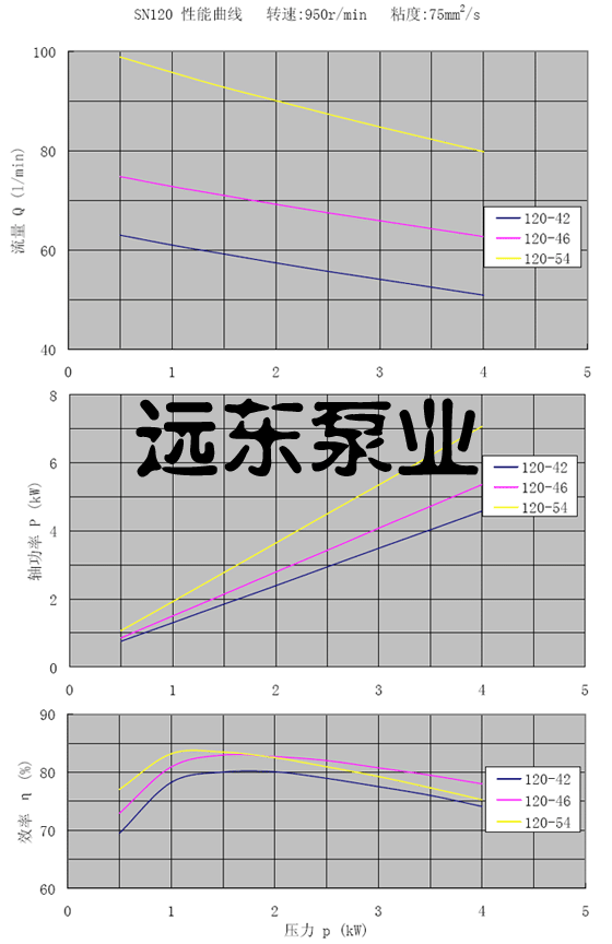 SN120三螺桿泵轉(zhuǎn)速950r/min,粘度75cst性能曲線圖
