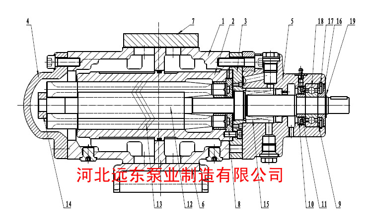 1.泵體 2.襯套 3.前蓋 4.后蓋 5.填料箱 6.泵底腳 7.蓋板 8.平衡套 9.支撐墊 10.潤滑環(huán) 11.間隔套